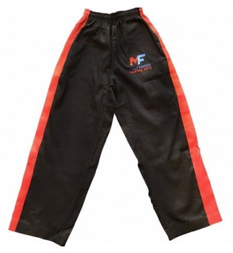 Matt Fiddes colour logo on the leg with red stripes